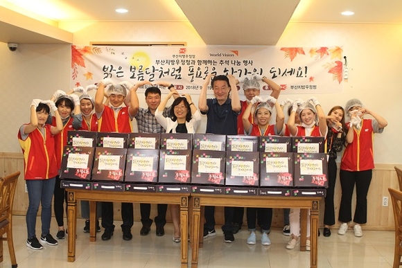 부산지방우정청은 19일 월드비전 연제종합사회복지관에서 추석명절을 맞아 저소득가정 및 홀로어르신 등 150여명에게 점심을 제공하는 무료급식 봉사활동을 펼쳤다.