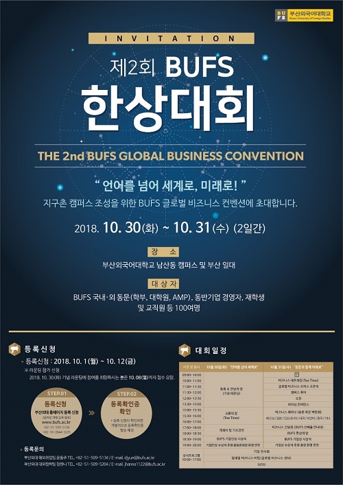부산외국어대학교는 오는 30, 31일 양일간 남산동 캠퍼스와 호메르스호텔에서 전 세계에서 활약하고 있는 부산외대 동문을 초청해 '제2회 BUFS 한상대회'를 개최한다.