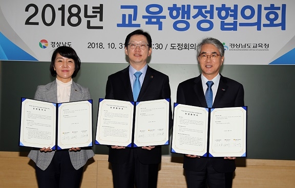 ‘경상남도교육행정협의회’가 31일 경남도청 도정회의실에서 김경수 도지사와 박종훈 교육감, 김지수 도의회 의장이 참석한 가운데 개최됐다.