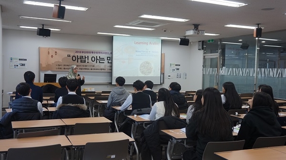 부산외국어대학교는 지난 12일 울산외국어고등학교 아랍어 전공 학생들을 대학으로 초청해 아랍어와 아랍 및 이슬람 문화에 대한 이해를 돕고자 '아랍! 아는 만큼 즐긴다'를 주제로 청소년 일일 학교를 개최했다고 13일 밝혔다.