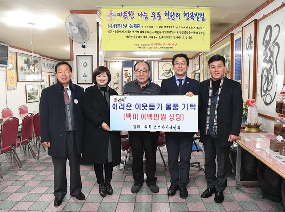 김해시의회 행정자치위원회는 연말을 맞아 더불어 살아가는 사회분위기를 조성하고 사랑의 손길이 필요한 이웃들이 꿈과 희망을 갖고 삶을 영위할 수 있도록 하기 위해 24일 사회복지단체에 쌀을 기탁했다. 이날 행정자치위 소속 의원들이 찾아가 기탁한 사회복지단체는 (사)행복1%나눔재단으로 쌀 20㎏ 40포(200만원 상당)를 전달하고 관계자들의 노고를 격려했다.