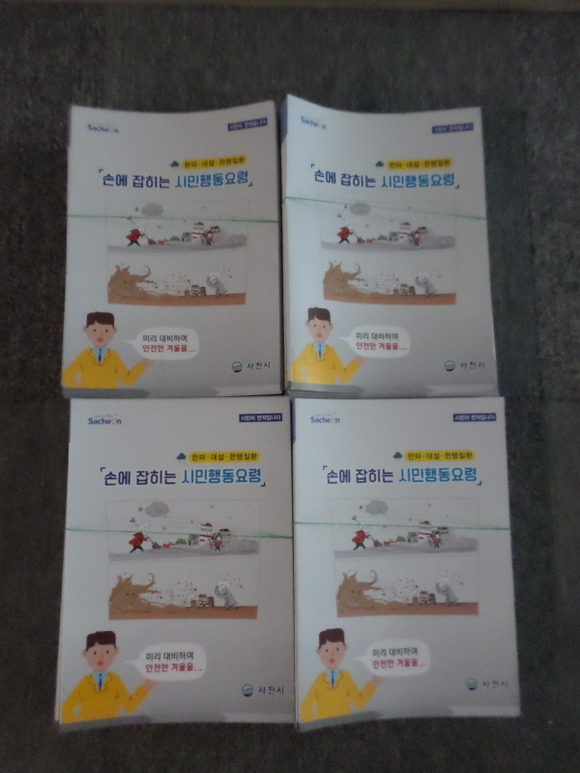 경남 사천시는 2019년 새해를 맞이하여 겨울철 자연재해 예방을 위해 대설·한파·한랭 질환 시 손에 잡히는 시민 행동요령 홍보 책자를 2,000부 자체 제작하여 시청 민원실 및 전 읍면동에 비치하여 안전한 사천시 만들기 홍보에 나선다고 15일 밝혔다.