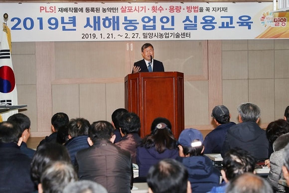 교육에 앞서 박일호 밀양시장은 “끊임없이 연구하고, 자기계발을 하는 농업인들이 있기에 우리 시의 농업분야 경쟁력은 걱정이 없다”며 “지난해 경북 상주, 전북 김제에 이어 농림부의 ‘스마트팜 혁신밸리 조성사업’ 유치를 통해 밀양의 농업을 한 단계 더 발전시키도록 하겠다”고 말했다.