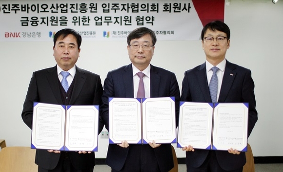 BNK경남은행은 18일 (재)진주바이오산업진흥원·입주기업협의회와 '회원사 금융지원을 위한 업무 지원 협약'을 체결했다.