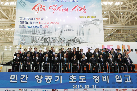 국토부 김현미 장관은 민간 항공기 정비 착수를 축하하며 “항공정비 산업은 항공 안전과 항공기 제작, 운송, 정비에 이르는 산업 생태계 구축과 동반성장을 위해 반드시 육성해야 할 산업”이라며 “항공정비 산업이 우리 경제를 이끌 수 있는 국가 전략산업으로 발전할 수 있도록 다양한 정책적 지원을 마련하겠다”고 약속했다.