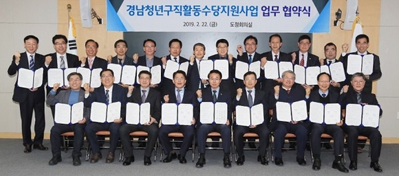 BNK경남은행은 22일 경남도, 18개 시군, (재)경남발전연구원과 '청년 구직활동수당 지원사업 업무협약' 체결했다.
