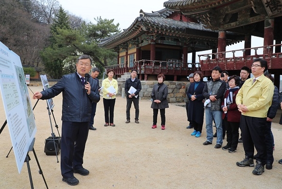 박일호 시장은 간부공무원, 문화계, 인근상인회, 내일동 주민대표 등 30여명과 함께 현장을 둘러보며 영남루의 가치를 높이고 주변 관광 인프라를 확충하는 방안을 집중 논의했다.