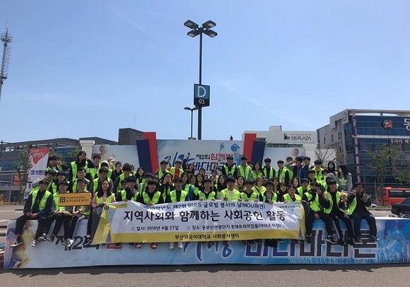 부산외국어대학교는 최근 기장군 동부산관광단지 일대에서 열린 '제2회 암예방 기장바다마라톤 대회'에서 BUFS글로벌 봉사단 학생 100여명이 봉사활동을 펼쳤다고 5일 밝혔다.