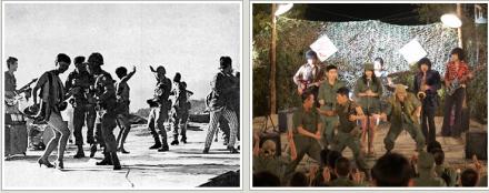 베트남 전쟁 속 위문공연단의 공연 모습을 생생하게 그려내며 새로운 재미와 깊은 여운을 선사하는 영화 <님은 먼곳에>. 특히 위문공연단 가수 ‘써니’로 파격 변신을 선보인 수애의 모습과 위문공연 가수들의 실제 경험담을 토대로 한 영화 속 공연 장면이 화제를 모으고 있는 가운데, 영화의 위문공연 장면이 실제 위문공연단의 모습과 비교되며 색다른 관심을 더한다. 영화 속 ‘써니’의 의상보다 더욱 파격적이며 지금의 가수들보다도 화려한 의상을 입고 공연을 펼치는 실제 위문공연단의 모습. 과연 40여년 전이 맞을까 싶을 정도로 새로운 감흥을 전하는 동시에 70년대 당시에 대한 향수를 자극한다.