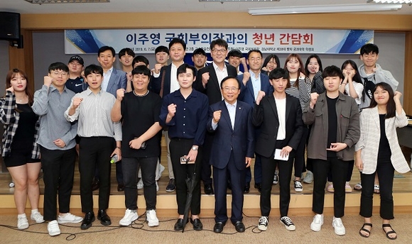 간담회에서는 이주영 국회부의장의 진행으로 지역소재 대학생들이 가지고 있는 현실적인 고민과 의견에 대해 소통하고, 현장 전문가들이 말하는 산업 현장의 현주소와 고용 정책 등에 대한 개선점을 학생들과 논의했다.