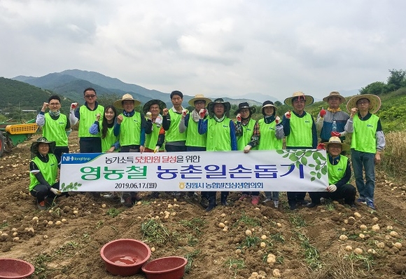 농협 창원시지부는 17일 창원시 북면 신기마을에서 영농철 일손부족 해소를 위해 창원시농협발전상생협의회 위원 20여명이 참여해 감자 수확에 구슬땀을 흘렸다고 밝혔다.