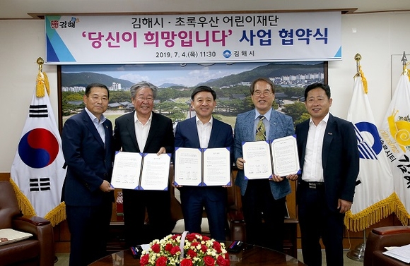 경남 김해시는 4일 시장실에서 초록우산 어린이재단과 아이들이 행복한 도시 김해를 위한 '당신이 희망입니다' 사업 업무협약을 체결했다.