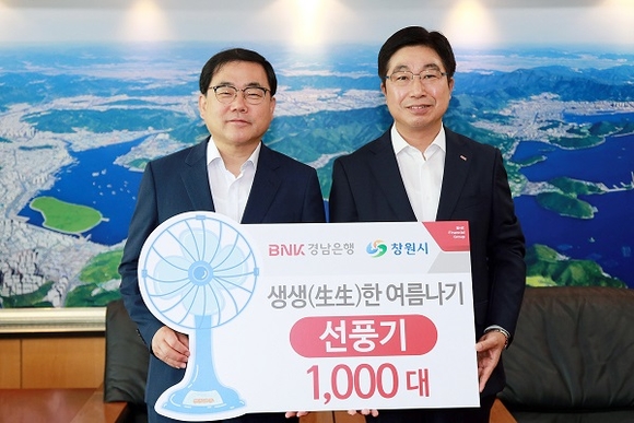 창원시는 5일 BNK경남은행이 저소득 가정의 시원한 여름나기를 위해 선풍기 1000대(환가액 3100만원)를 기탁했다고 밝혔다.