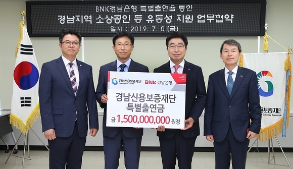 경남지역 소상공인 등 유동성 지원 업무 협약에 따라 경남은행은 협약보증 재원으로 15억원을 특별 출연하기로 했다.