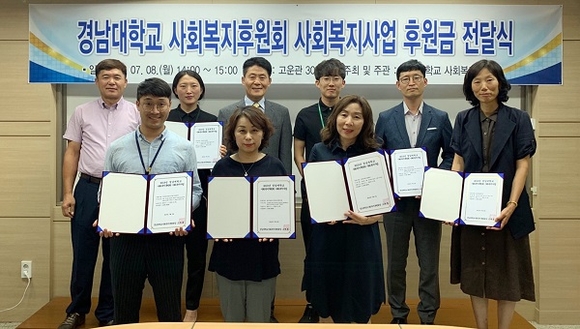 경남대학교 사회복지후원회는 8일 고운관에서 '2019년 사회복지사업 후원금 전달식'을 개최했다.