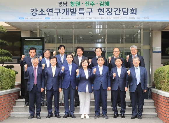 지난달 19일 열린 과기부 '연구개발특구위원회'에서 창원(지능전기 기반 기계융합), 진주(항공우주부품 소재산업), 김해시(의생명·의료기기) 3곳이 강소특구사업 대상으로 지정, 의결된 바 있다. 김 지사는 강소특구 선정 이후 20여일 만에 현장을 직접 찾아 경남지역경제 활성화의 계기로 만들겠다는 의지를 보였다.