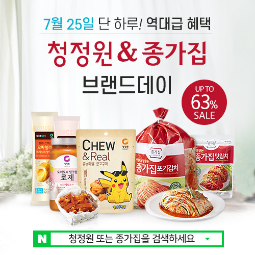 대상이 25일 단 하루 동안 ‘청정원&종가집 네이버 브랜드데이’ 행사를 진행한다고 밝혔다. 네이버에 ‘청정원’ 또는 ‘종가집’을 검색한 뒤 각각의 네이버 스마트 스토어에 접속하면 확인 가능하다.