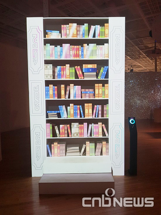 ‘차원의 도서관’도 인상적이다. 이는 ‘메이플 스토리’를 기반으로 만들었다. ID밴드를 전시물 앞 센서에 터치하면, 도서관에 불이 켜진다. 계단 위에 올라서라는 문구가 나타나고, 한 발자국 앞으로 내딛으면 도서관이 작동한다. 특정한 책을 건드리면, 이 에피소드의 주요 문장과 음악을 눈과 귀로 감상할 수 있다.