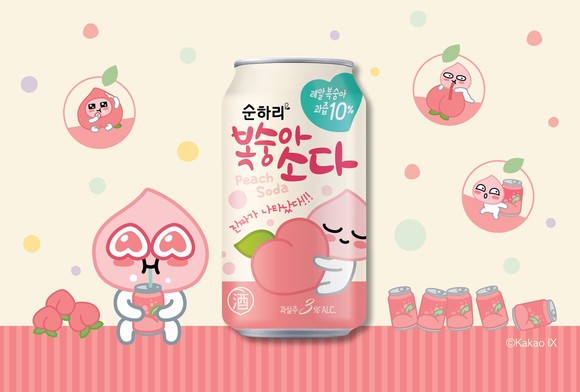 인기 캐릭터와의 협업도 눈에 띈다. 롯데주류는 카카오프렌즈와 협업한 과일탄산주 ‘순하리 복숭아 소다’를 지난 5일 출시했다. 복숭아 컬러의 패키지에 카카오프렌즈 인기캐릭터인 ‘어피치’를 포인트로 사랑스럽고 귀여운 느낌을 한껏 살렸다. 어피치 캐릭터가 복숭아를 안고 있는 모습으로 복숭아맛 제품의 특징을 부각시켰다.