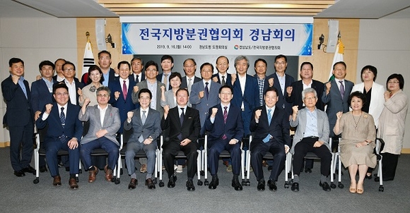 지방분권의 실질적 실현 공론화를 위한 전국지방분권협의회 경남회의가 김경수 지사와 협의회 위원(공동의장 정원식, 강태재, 조태영, 김선희), 관계공무원 등이 참석한 가운데 16일 경남도청에서 열렸다.