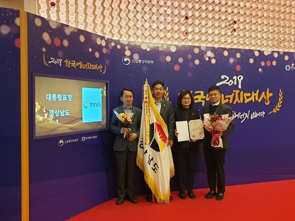 경남도가 12일 서울시 63컨벤션센터에서 열린 산업통상자원부 주최 '2019 한국에너지대상' 시상식에서 에너지효율 시책 및 홍보 분야 우수기관으로 선정돼 대통령 표창을 수상했다.