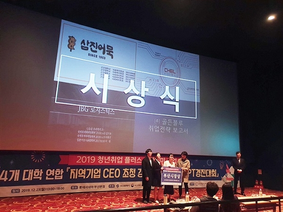 부산외국어대학교는 2, 3학년 재학생으로 구성된 팀이 최근 부산 롯데시네마에서 진행된 '2019 청년취업 플러스 아카데미-지역기업 CEO 초청 강소기업 취업전략 PT경진대회'에서 최우수상(부산시장상)을 수상했다고 30일 밝혔다.