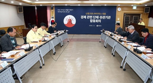 경남 창원시는 3일 신종 코로나바이러스가 확산하고 있는 가운데, 경제 관련 단체·유관기관 관계자들과 긴급합동회의를 가졌다.