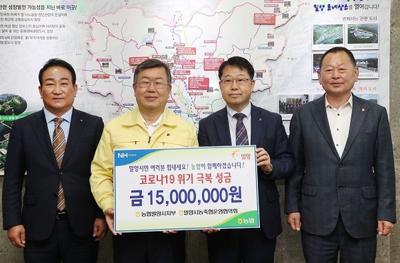 코로나19 위기 극복을 위해 NH농협은행 밀양시지부와 밀양시 농축협운영협의회에서 함께 힘을 모았다.