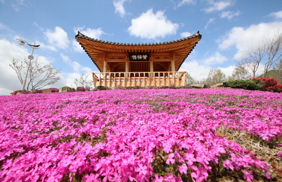 (사진=산청군 제공) 황배루 전망대 분홍빛 꽃잔디 만개