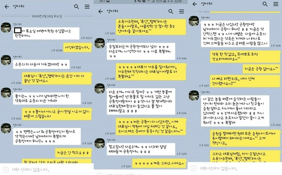 과거 ‘다빈’이라는 이름으로 가수 활동을 했다는 남성 B(31)씨가 올린 것으로 추정되는 이 게시물에는 두 사람이 나눈 카카오톡 내용이 실려있었는데, A씨의 대화 대부분이 B씨에 대한 조롱과 욕설, 폭언으로 일관돼 있었다. 아래는 해당 폭언 내역이다.