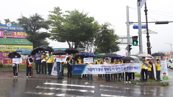영천시 상수도사업소는 7일 아침 출근시간대에 도남사거리 입구에서 지역내 기업 출근자를 대상으로 전입 홍보 캠페인을 펼쳤다고 밝혔다.