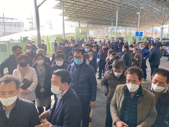 설명회장 바깥에도 산업선 확정에 관심이 많은 지역주민이 300명 이상 몰려 100명씩 3차례에 걸쳐 진행했다.
