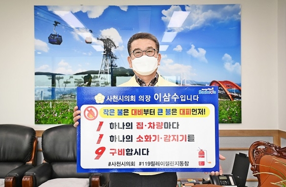 사천시의회 이삼수 의장이 지난 1일 '화재안전 119 릴레이 챌린지'에 동참했다.
