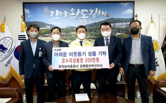 한국농어촌공사 김해양산부산지사는 지난 11일 김해시를 방문해 관내 어려운 이웃을 위해 사용해 달라며 온누리상품권 200만원을 기탁했다.