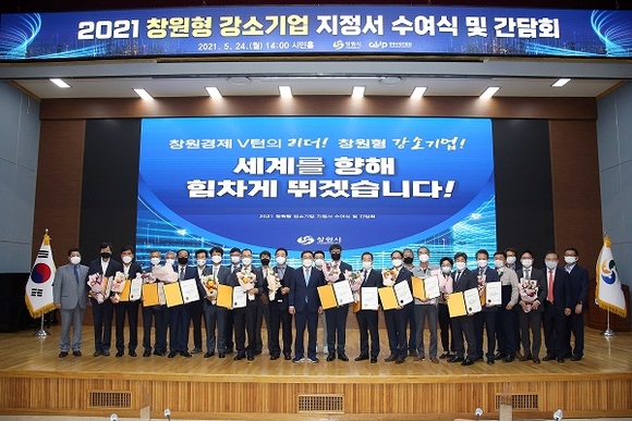 경남 창원시는 '2021 기업 氣 살리기 주간' 첫날인 24일 오후 시민홀에서 올해 창원형 강소기업으로 지정된 15개사 대표에게 지정서를 수여했다.