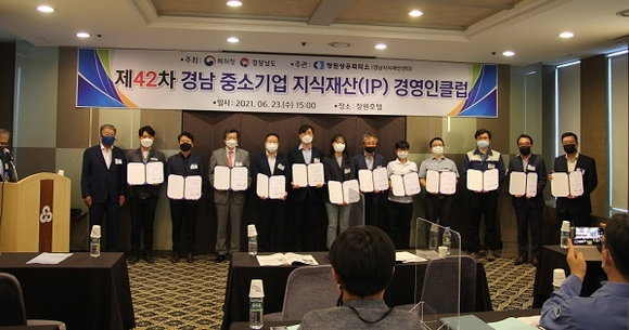 창원상공회의소 경남지식재산센터는 23일 오후 창원호텔에서 '제42차 경남 중소기업 지식재산(IP) 경영인클럽'을 개최하고, 올해 글로벌 IP스타기업으로 선정된 기업에 지정 확인서를 수여했다.
