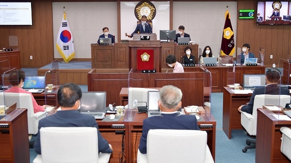 배몽희 의장은 개회사에서 “바쁜 의정활동 속에서도 군정의 근간이 되는 조례 정비에 소홀함이 없도록 성실한 의정활동을 기대한다”며 “특히 수도권을 중심으로 확진자가 폭증하는 가운데 오늘부터 우리 군에서 추계 전국고등학교 축구대회가 시작되고 휴가시즌이 겹치는 만큼 코로나19 재확산 방지를 위한 방역지침준수와 백신접종에 힘써 줄 것”을 집행부에 당부했다.