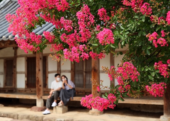 한여름 무더위가 한창인 2일 경남 산청군 덕천서원에 배롱나무 꽃이 만개했다. 배롱나무는 붉은 꽃이 100일 동안 핀다고 '백일홍 나무'라고도 불린다. 경남도 유형문화재 제89호인 덕천서원은 1576년 남명 조식 선생의 후학들이 선생의 가르침을 기리기 위해 세웠다. (사진=산청군 제공)