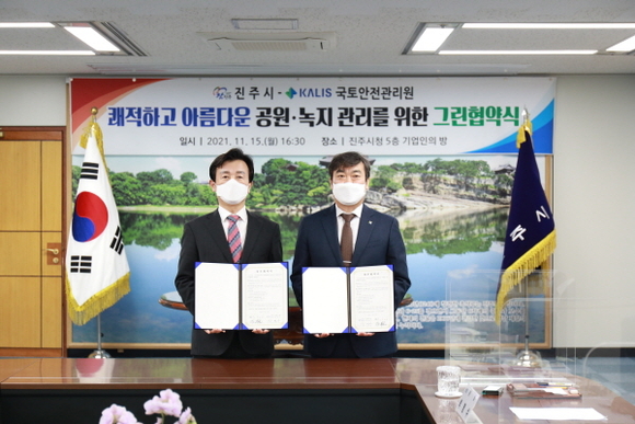 국토안전관리원은 지난 15일 진주시와 ‘그린협약’을 체결하고 도시공원과 가로수 등 시 관내 녹지지역에 대한 쾌적한 환경조성에 나서기로 했다고 밝혔다.