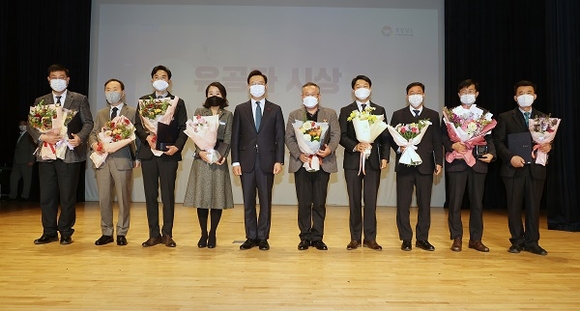이어 지난해 국가와 경남 발전을 위해 애쓴 단체와 개인에 대한 표창 수여가 진행됐다. 민기식 예산담당관과 이재기 수질관리과장은 녹조근정훈장을, 통합교육추진단 하정수 교육혁신담당사무관은 근정포장을 받았다. 산림정책과 최동성 산림병해충담당사무관과 법무담당관실 김연아 주무관은 대통령 표창을, 도 법무담당관실과 산업혁신과, 복지정책과와 아동청소년과는 각각 장관 표창을 수여했다.