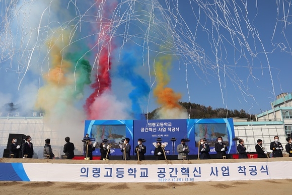 경남도교육청은 10일 의령고에서 최성유 부교육감, 김문희 교육부 기획조정실장, 오태완 의령군수, 학교 관계자, 학부모 등이 참석한 가운데 '학교단위 공간혁신 그린스마트 미래학교' 착공식을 열었다. 사천 용남고도 이날 별도 착공식 없이 공사를 시작했다.