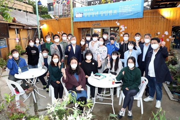지난해에 실시한 '청년창업캠프'에는 33명이 참여했으며, 수료한 청년들이 음식, 차류, 공예품 등으로 밀양 지역에서 창업해 현재 성업 중에 있다. 올해 청년 창업캠프에는 27명이 참여한다.