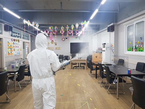 무료 방역서비스는 초미립 약제 살포기를 이용한 바이러스, 해충 박멸소독과 함께 일상생활에서 손쉽게 실천할 수 있는 생활방역 노하우도 교육을 한다.