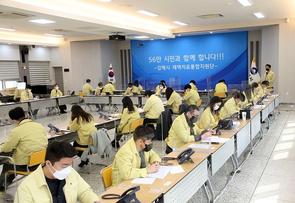 경남 김해시는 최근 코로나19 확진자가 1일 3천명 가까이 발생함에 따라 재택치료자 관리를 더욱 신속하고 세밀하게 처리하기 위해 본청 공무원 50여명을 매일 투입해 '재택치료통합지원단'을 운영한다고 10일 밝혔다.