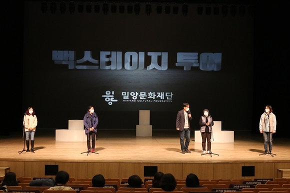 밀양문화재단은 이달부터 밀양아리랑아트센터 대공연장에서 관내 초·중·고교생을 대상으로 무대체험 프로그램인 '백스테이지 투어'를 운영 중이다.