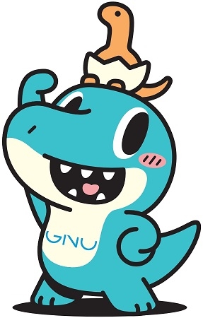 공룡을 형상화해 제작한 마스코트는 귀엽고 친근하게 표현했다. 단순한 형태와 귀여운 표정이 압권이다. 공룡의 가슴에는 새 심벌마크 GNU가 새겨져 있다. 공룡의 이마 위에는 알에서 깨어나는 아기공룡이 올라앉아 있는데, 이는 영원히 사라지지 않고 끊기지 않는 대학과 학문의 영속성을 상징한다. 깜찍한 이미지의 공룡 마스코트는 특히 20대 대학생들에게 큰 인기를 끌 것으로 기대를 모으고 있다. 경상국립대는 공룡 마스코트를 활용한 상품을 개발 중이며, 공룡의 이름은 공모할 예정이다.