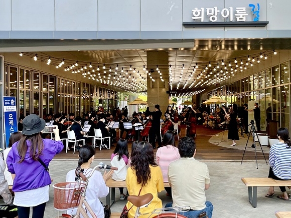 한명신 점장은 "장애인에 대한 편견을 깨고 희망을 선사한 희망이룸 오케스트라의 업적을 기억하고 계승해나가고자 공공보행통로를 희망이룸길 이라는 이름을 정하게 됐다"고 밝혔다. 이날 행사에서 롯데몰 진주점은 장애 예술인 지원금 100만원을 전달하기도 했다.