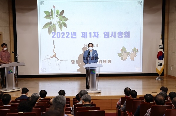 경남 함양군은 18일 문화예술회관 소공연장에서 산삼축제위원 등 100여명이 참석한 가운데 '2022년 함양산삼축제 임시총회'를 가졌다.