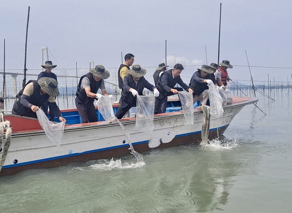 전남도해양수산과학원은 또 수산물 지리적표시 품목으로 등록된 순천만 가리맛조개를 10월 말까지 100만 마리를 방류한다는 목표다. 이미 지난 9월 순천만 서식지에 우량종자 80만 마리를 방류했다.