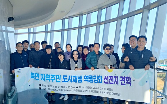 인제군 북면 지역주민들과 이수현·황현희 인제군의원은 최근 '병영문화도시 원통RE' 도시재생사업 성공 추진을 위해 북면 지역주민 도시재생 역량강화 선진지 견학을 다녀왔다. 이번 견학에서는 서울시·태안군·공주시·대전시 등 4개 도시의 특화 경관, 특화거리, 도심공원 등을 돌아보고 지역에 접목 가능한 선진사례를 논의했다.